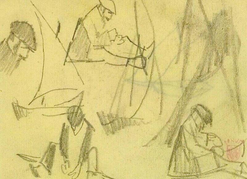 Zittende figuren (nettenreparaties?), 1914