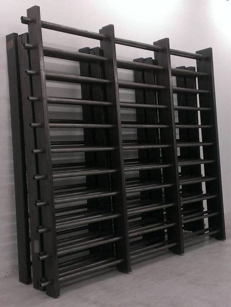 240 × 275 × 15 cm (laagste 3 hekken, spijlen horizontaal genomen) 260 × 275 × 15 cm (hoogste 2 hekken, spijlen horizontaal genomen)