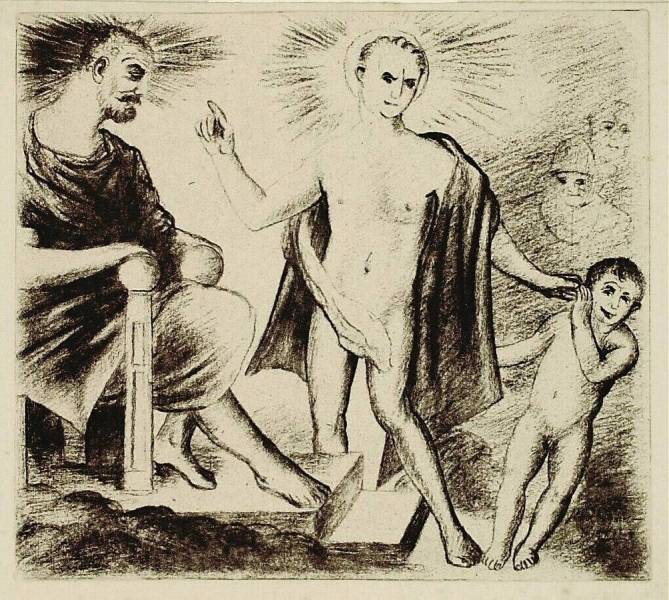 Bijbelse of mythologische voorstelling met kind, begin 20ste eeuw