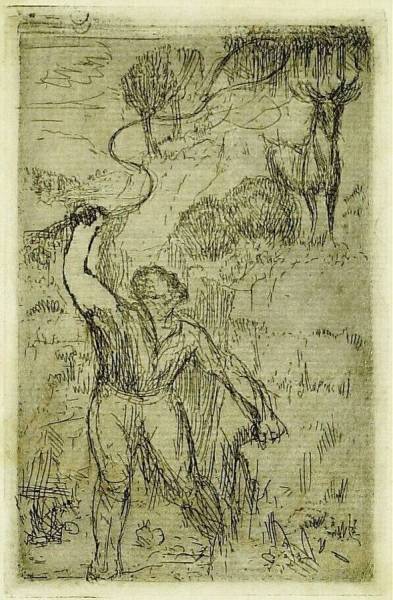 Man probeert met een lasso een hert te vangen, begin 20ste eeuw