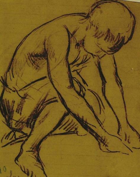Hurkende halfnaakte jongen, eind 19de - begin 20ste eeuw