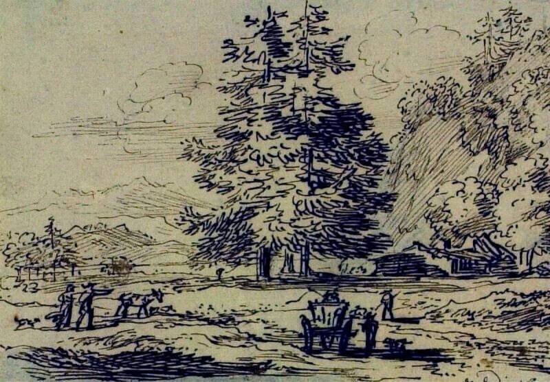 Berglandschap met dennebomen op de voorgrond, 18de eeuw