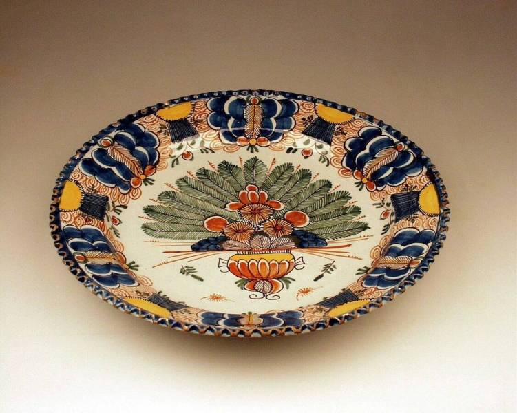 Schotel: Delfts polychroom pauwbord, ongedateerd