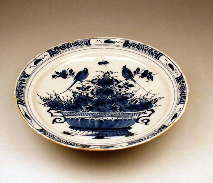 licht gebakken aarde, dekkende tinglazuur, wit en schildering onder het glazuur