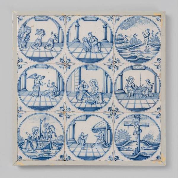 Negen tegels in een tableau van 3 x 3, 18de eeuw