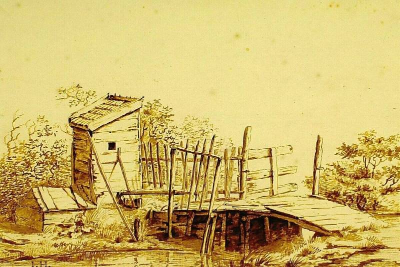 Schijthuisje bij een bruggetje over een sloot, 18de eeuw