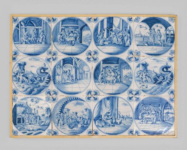 Twaalf tegels in een tableau van 4 x 3, voor 1935