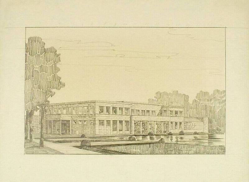 Kopie naar een ontwerp voor 'Ellenwoude' te Wassenaar (perspectieftekening), 1965 (origineel 1911 - 1912)