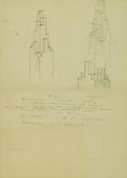 Schets voor reconstructie van de trappaal uit 1917-1918 van Robert van 't Hoff, circa 1962