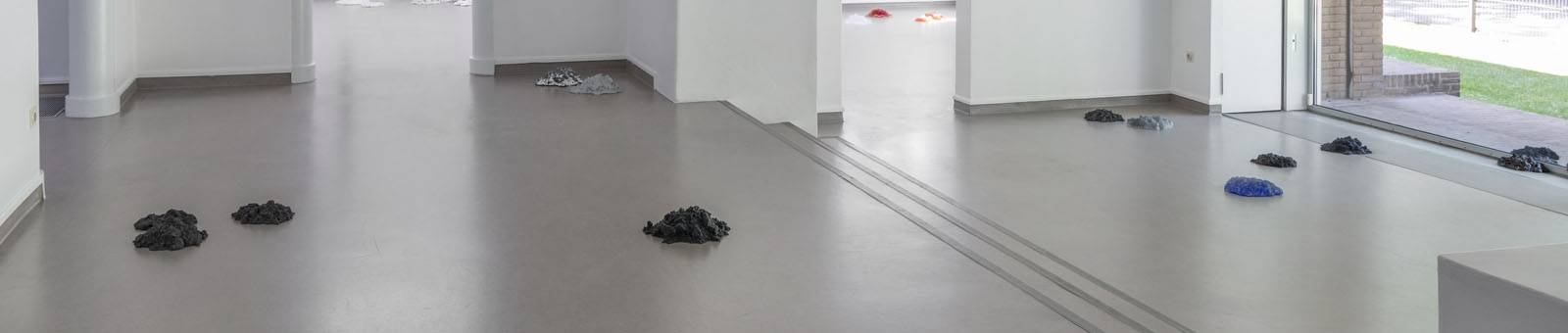 Foto's: Sarah van Sonsbeeck, Moles of Modernism, 2023, foto: Marjon Gemmeke / Jo Baer, Untitled (Double bar-red), 1972