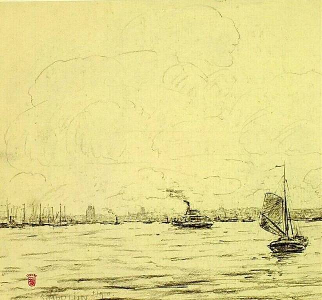 Gezicht op de Maas bij Rotterdam, eind 19de - begin 20ste eeuw