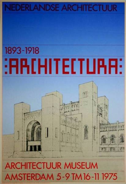 Affiche Architectuur Museum, Amsterdam (tentoonstelling 'Architectura, Nederlandse architectuur 1893-1918'), 1975