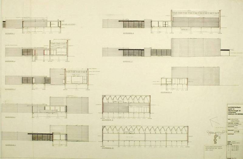 Bestektekening doorsneden expositievleugel, 16 april 1973