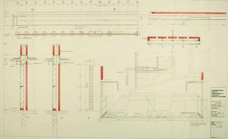 Dekoratieve betonwand in stram T18, 5 augustus 1975