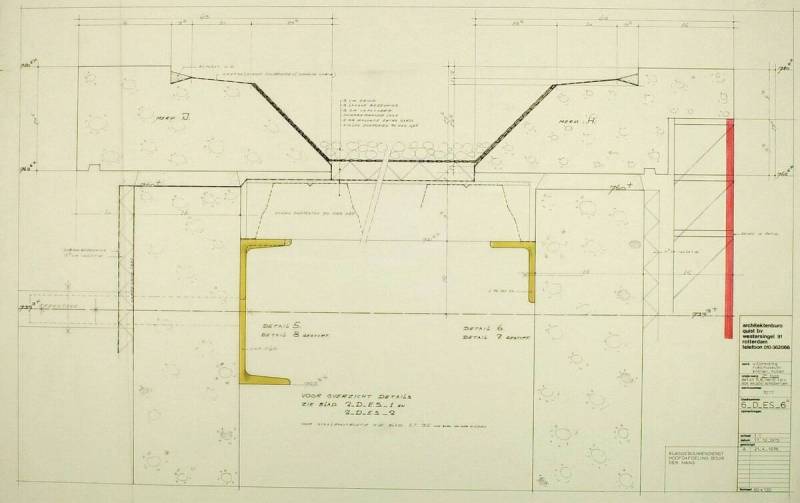 Detail 5, 6, 7 en 8 t.p.v. dak expositie schilderijen, 17 december 1975
