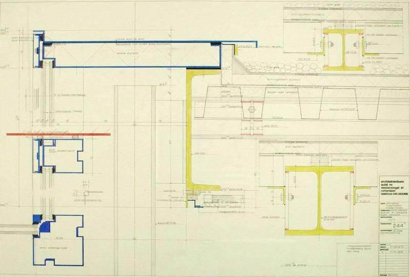 Detail dakrand puizijde en oplegging stalen dekplaten, 17 december 1973