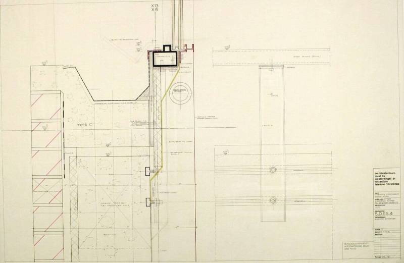 Onderdetail lichtkap t.p.v. stramien X6 en X13, 6 januari 1976