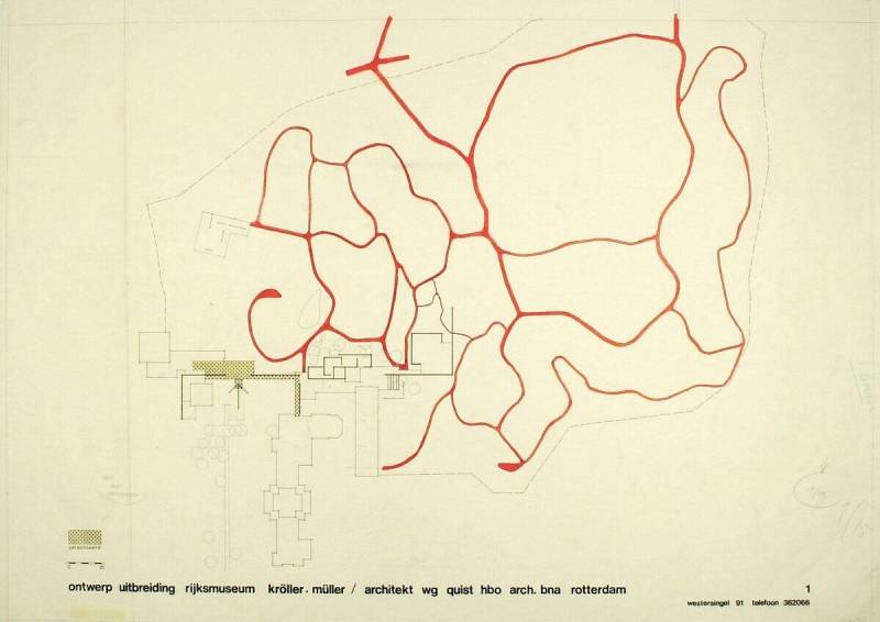Ontwerp uitbeiding: plattegrond museum en beeldentuin, 1972