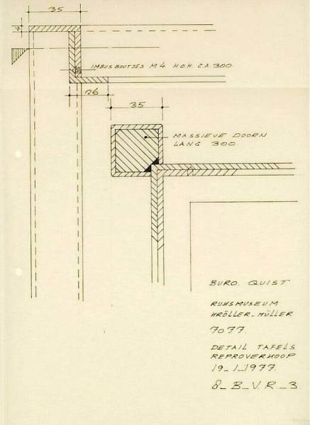 Uitbreiding Kröller-Müller Museum. Detail tafels reproverkoop, 19 januari 1977