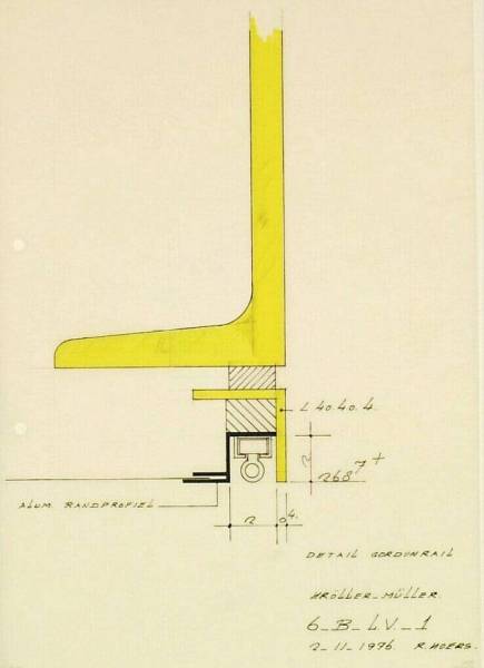 Uitbreiding Kröller-Müller Museum. Detail gordijnrails, 2 november 1976