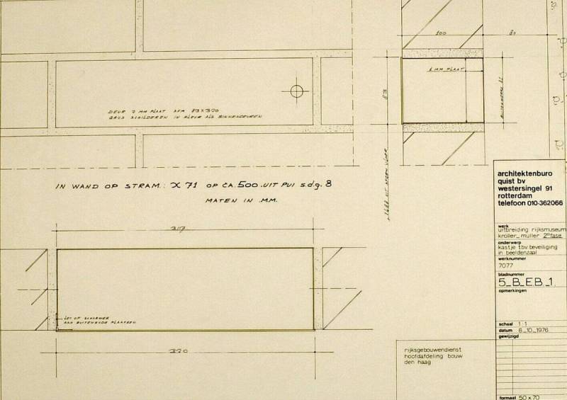 Uitbreiding Kröller-Müller Museum. Kastje t.b.v. beveiliging in beeldenzaal, 6 oktober 1976